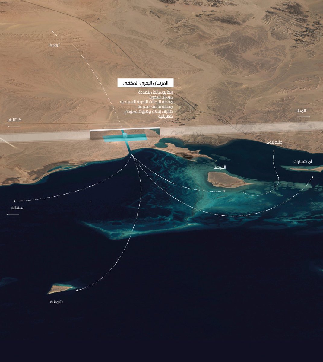 كما نعنى بحماية الشعاب المرجانية الموجودة حول المرسى البحري المخفي والقناة الملاحية واستعادتها وإعادة تأهيلها.