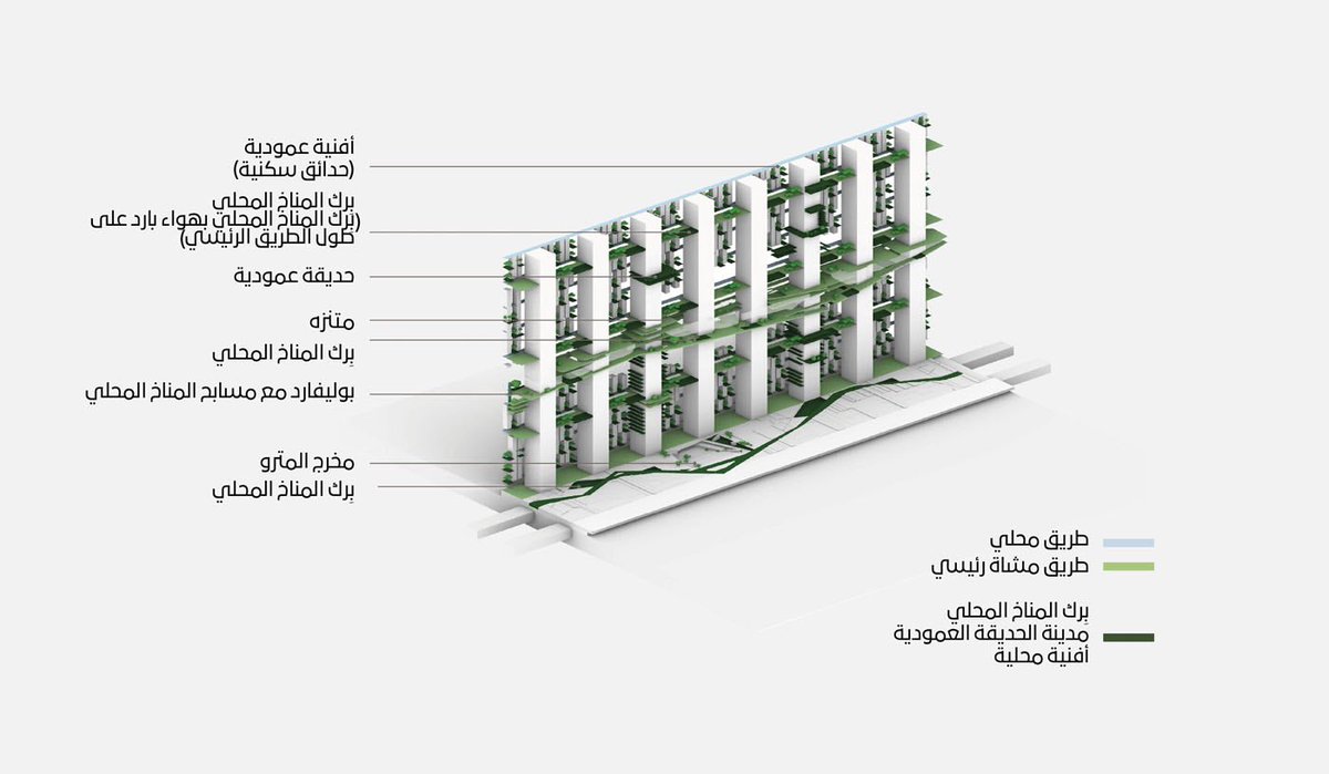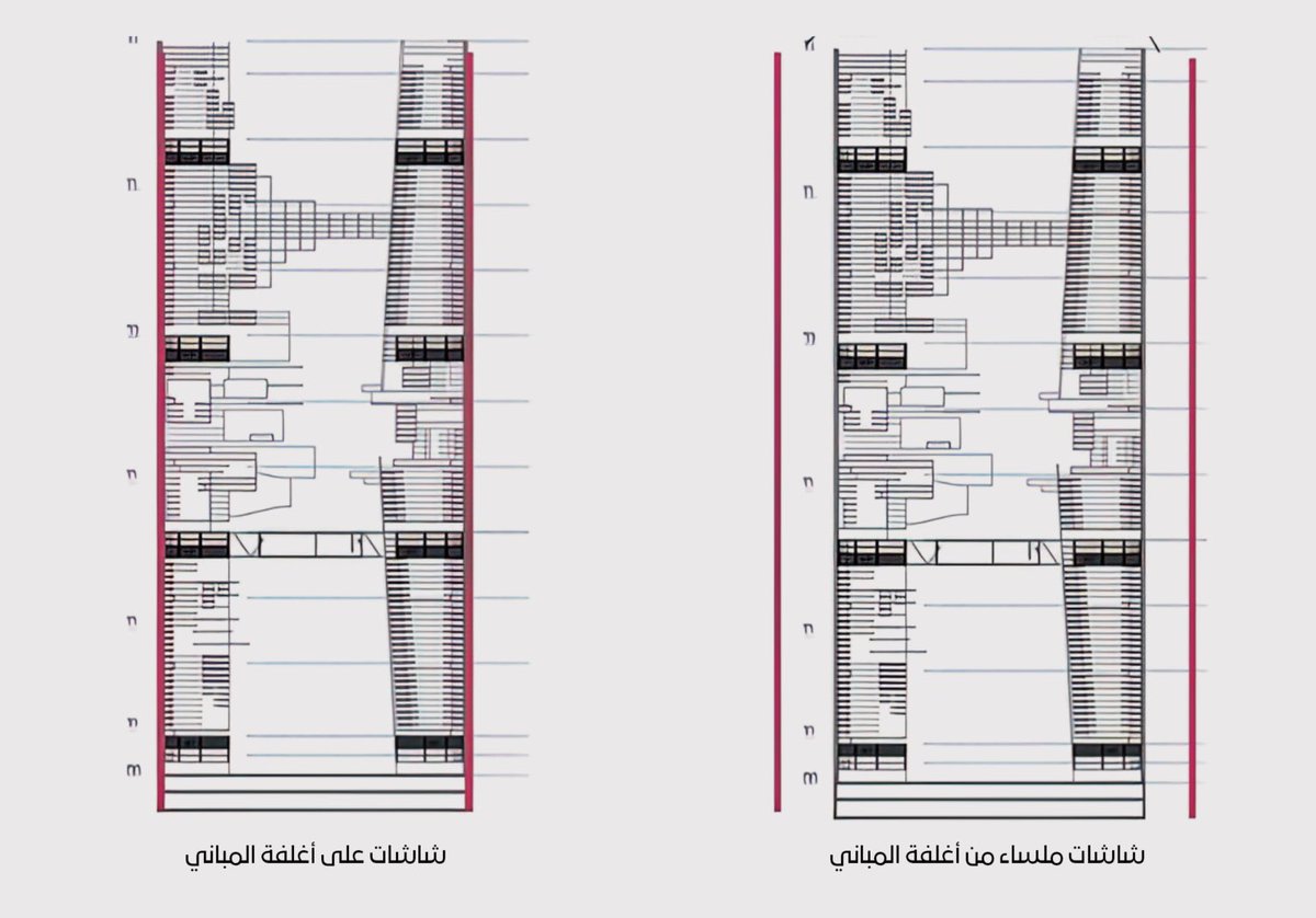 كما تعد معالجة مرآة “ذا لاين” وإكساء المباني بالزجاج والمواد مكونات رئيسية لتحسين المعيشة الذي سيستمر في التطور مع تقدم التصميم.