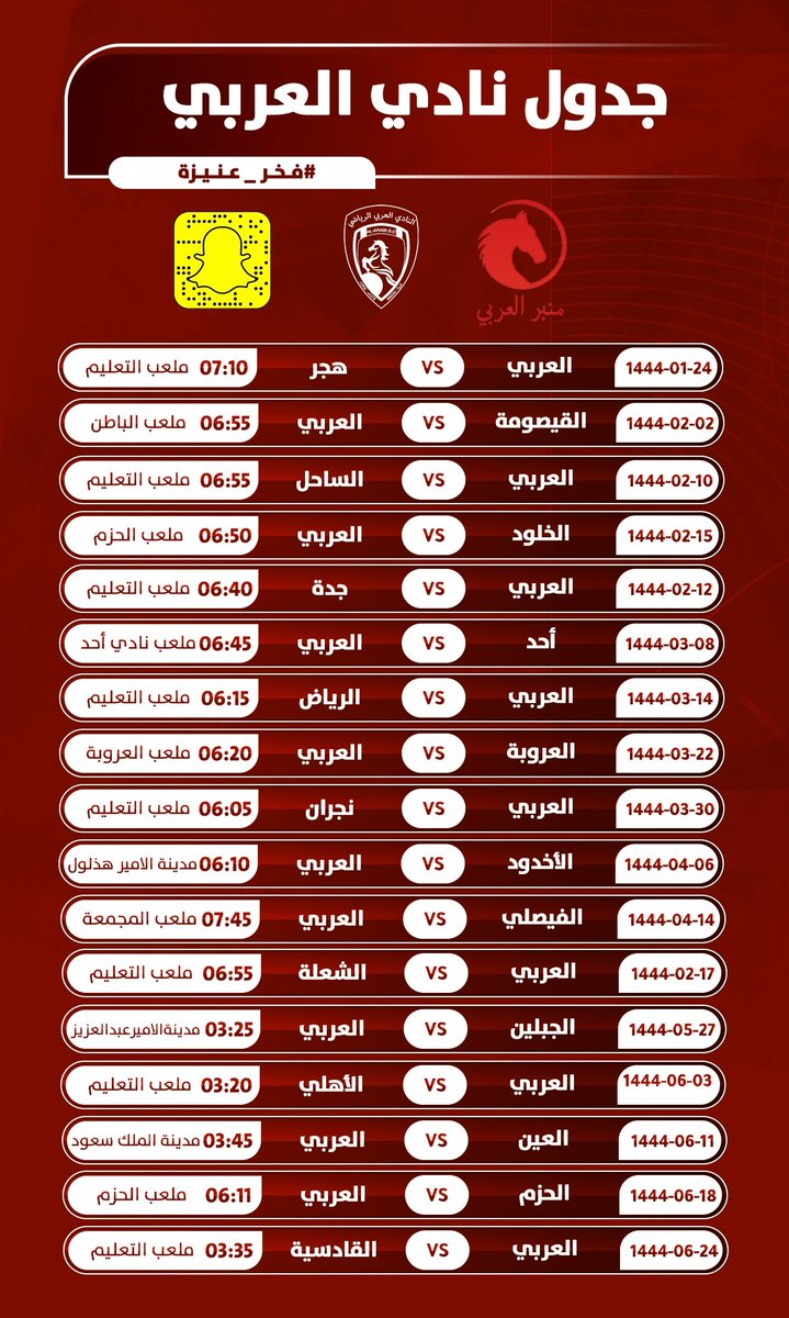 🗒️ || جدول مواعيد مباريات #نادي_العربي في #دوري_يلو ⚽