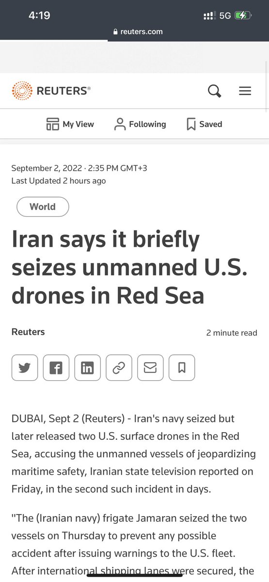 • اليوم التلفزيون الإيراني يقول إن الجيش الإيراني استولى على طائرتين بدون طيار أمريكية ثم أعاد إطلاقها !