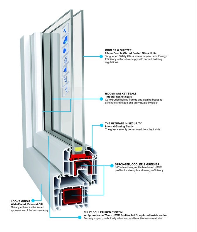 يجب استخدام إطارات النوافذ من المواد العازلة للحرارة مثل الخشب و الفينيل إلى جانب الزجاج المزدوج؛ للحصول على عزل تام.