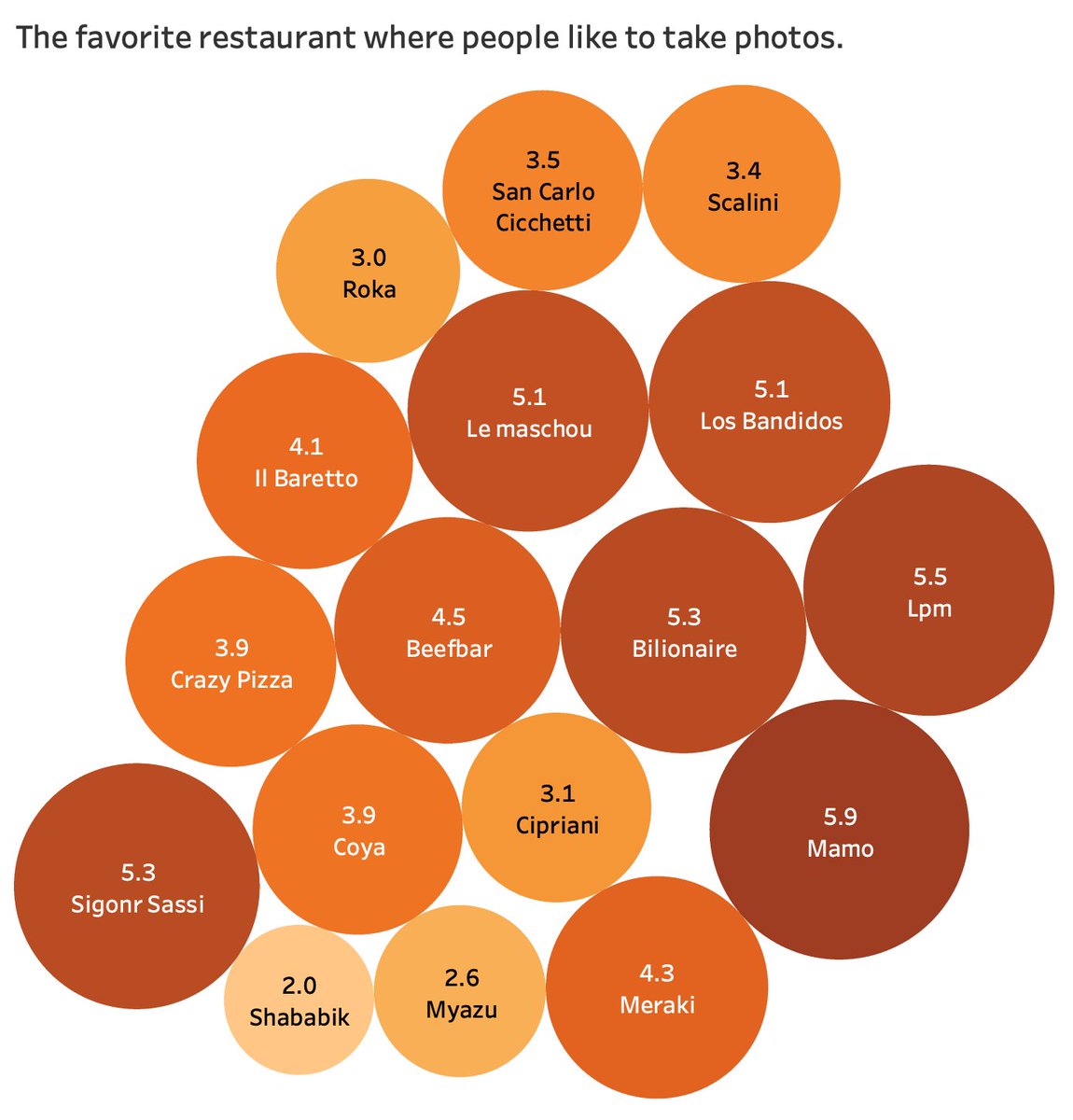 التحليل استند على بيانات حقيقية من google لزوار المطاعم شمل عددهم و وقت الزيارة (من خلال حساب كم جوال في المطعم) و أرائهم و تقييماتهم.