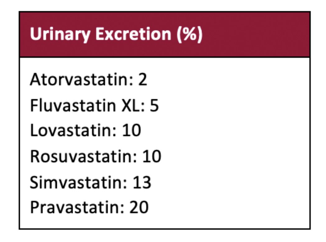 - ادوية مثل أتورفاستاتين (ليبيتور) و فلوفاستاتين (ليسكول) لديهما أقل إفراز في البول ، وقد يكونان الخيار الأفضل في المرضى الذين يعانون من ضعف وظائف الكلى.