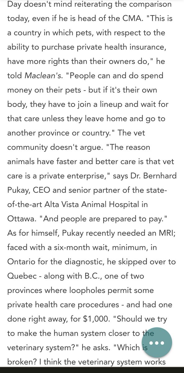 I always thought Canadian veterinary hospitals look nicer & cleaner than human hospitals because they're private. This article from 2008 makes it clear they're also better, faster & more efficient. The gap has clearly grown a lot since then, too