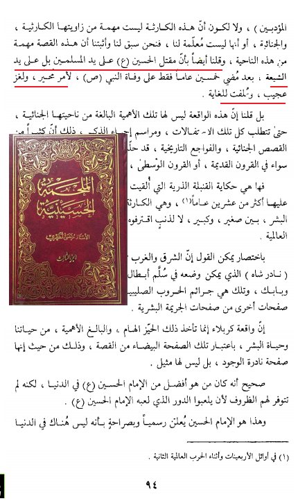 بل كل أئمتك بعد الحسين لم يعترضوا ولم يطالبوا بحكم وظلوا ساكتين ولم يقتدوا بجدهم الحسين الذي خرج محاربة للظلم كما تزعمون