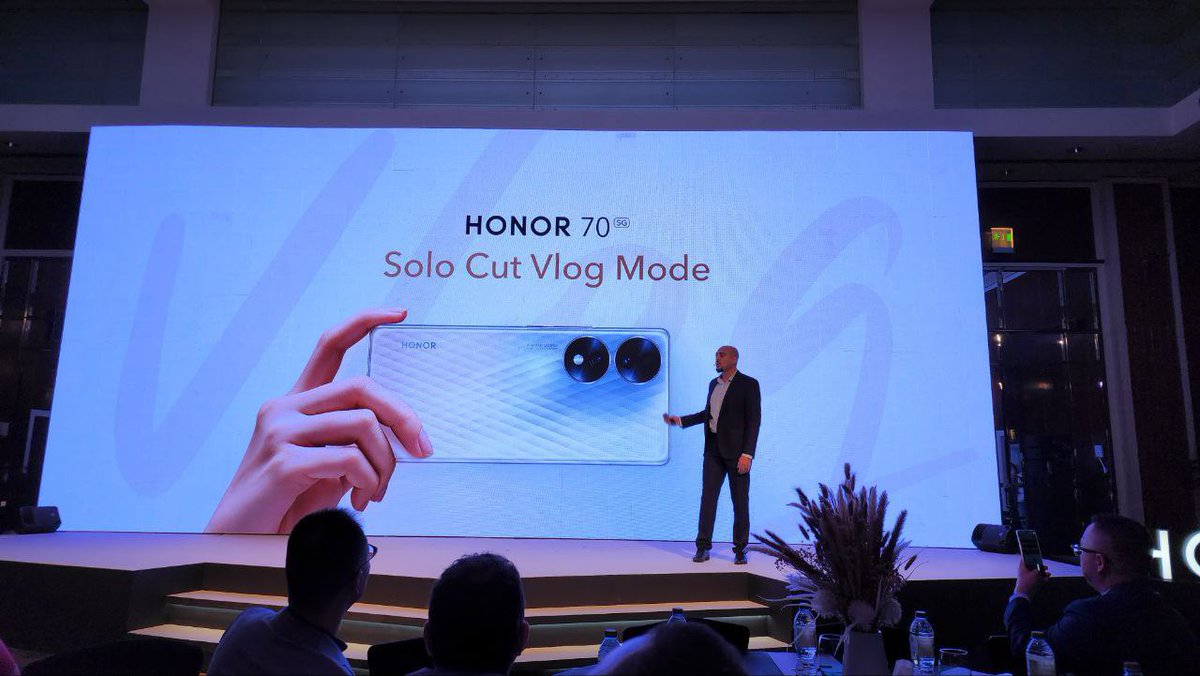 مستشعر Sony IMX800 راح يحسن جودة الفيديوات وايضا الصور.. وبرضو يدعم ميزة Solo Cut اللي تركز على تصوير شخص واحد اثناء وينحفظ كفيديو منفصل مع الفيديو الاساسي، راح تنفع لمحبين الفلوقات او التصوير بالأماكن العامة . #HONOR70
