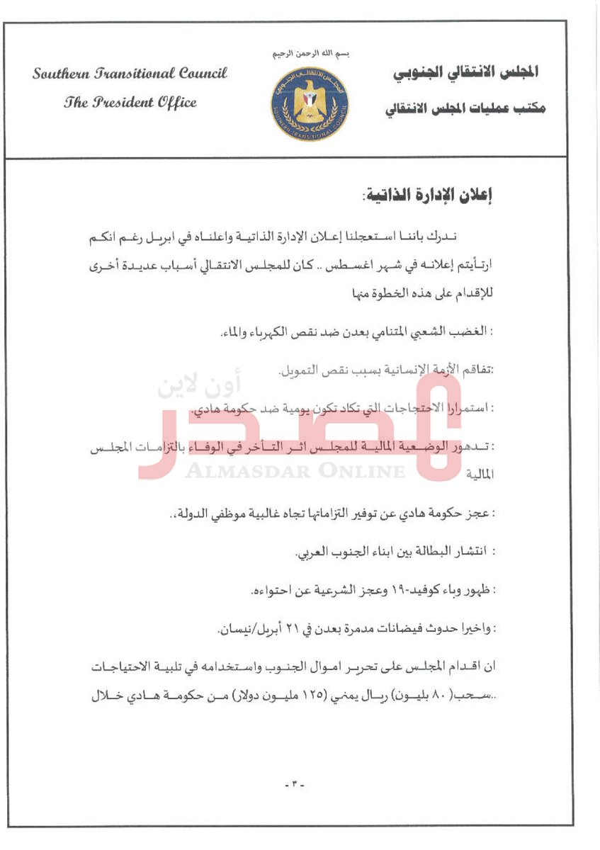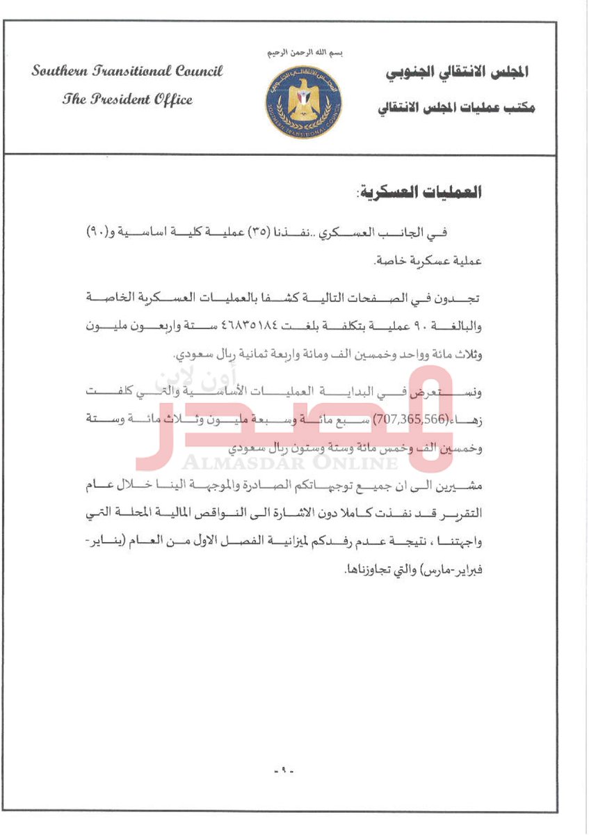 المذهل في التقرير هو إحاطة الانتقالي لـ "الوحدة الخاصة"، صاحبة الأيادي الكريمة، كما جاء في التقرير، بكل تفاصيل تحركات وأعمال المجلس وصرفياته، حتى على مستوى تكاليف إصلاح سيارة، وحتى الإفراج عن أي معتقل يمني في سجون الانتقالي.