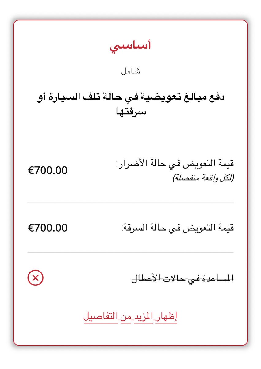 🔴بعض الشركات ببعض الدول تؤجر سياراتها بدون تأمين ضد الغير وفي هذه الحالة لا يشملك تأمين البطاقة ويجب عليك إضافة تأمين ضد الغير ليشملك تأمين البطاقة