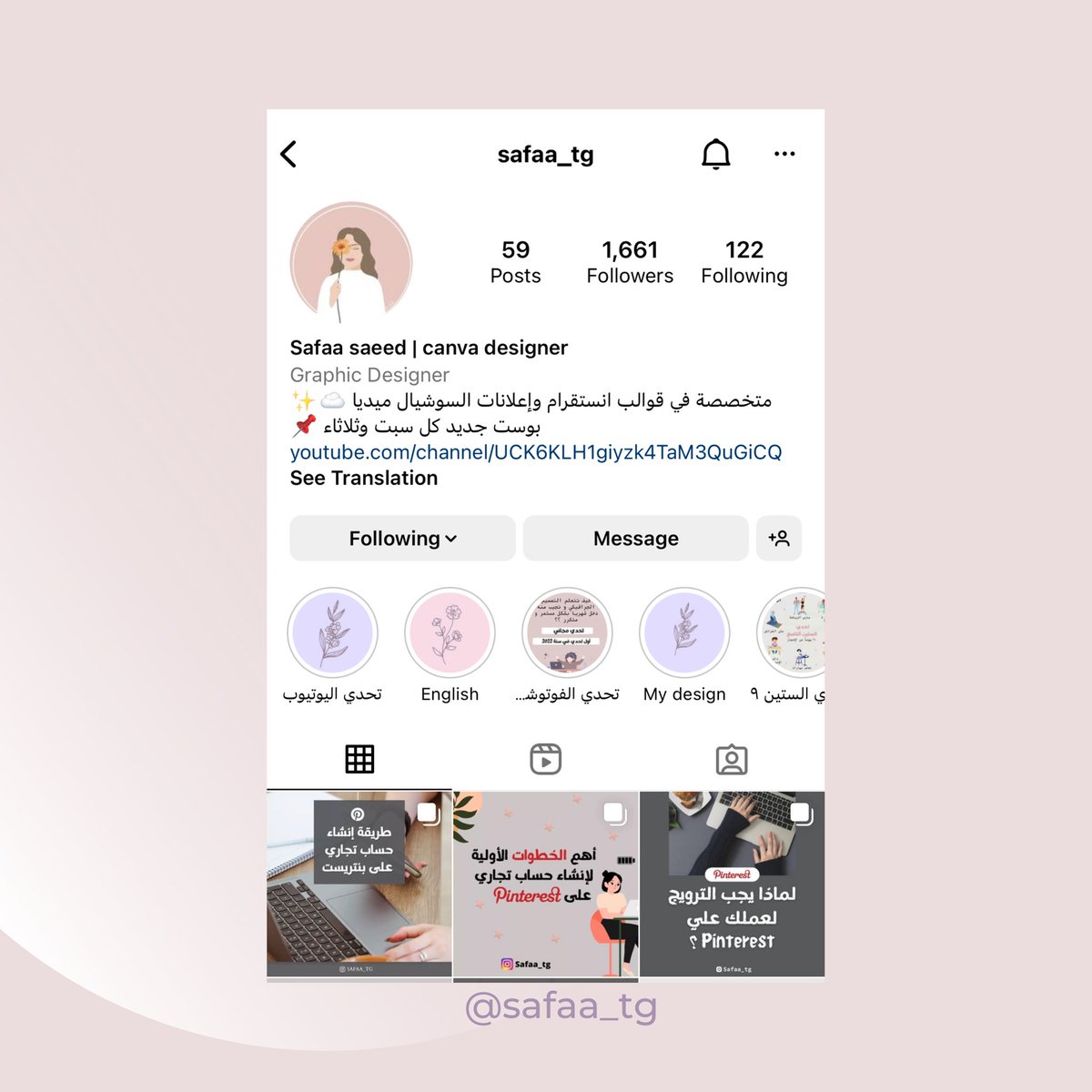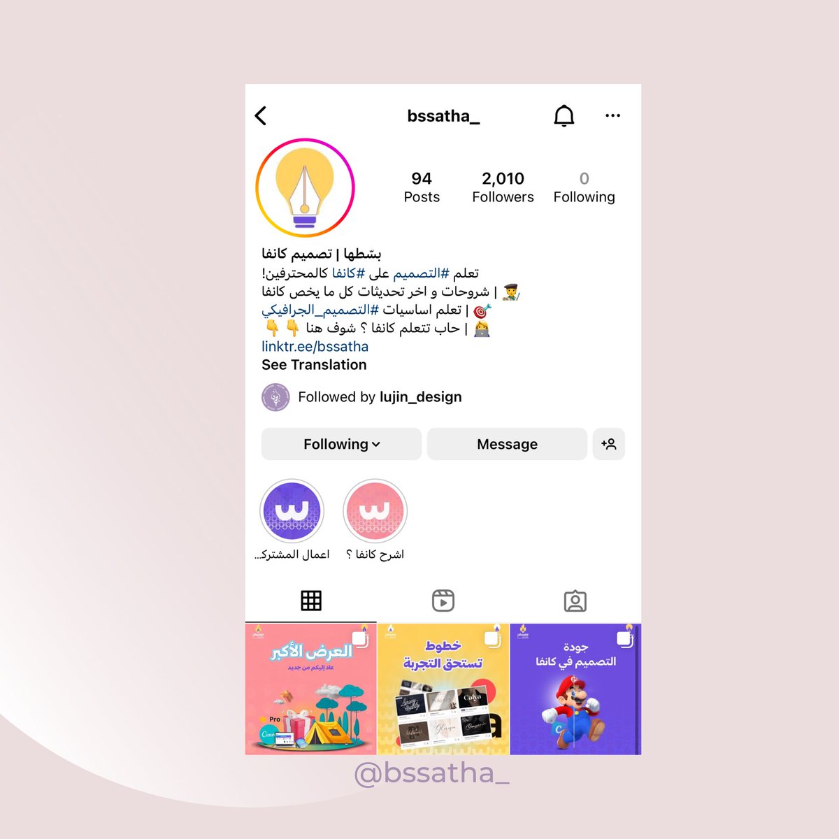 حساب مدونة آر من الحساباات الي تابعتها قريب واستفدت من نصائحها و بعض أسرار كانفا 🥳👏🏻