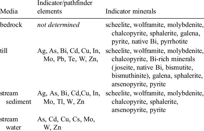 وتُسمى العناصر التي تستخدم للاستدلال على تواجد الخامات المعدنية باسم العناصر الدالة Pathfinder elements or indicators مثل العناصر الموضحة في الجدول ادناه