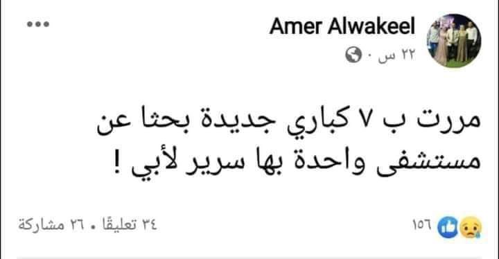 أسباب عدم وجود سرير في مستشفى كثيرة، منها موجات كورونا المتتالية وارتفاع أسعار المستشفيات ولأن القطاع الصحي منفلت تماماً.