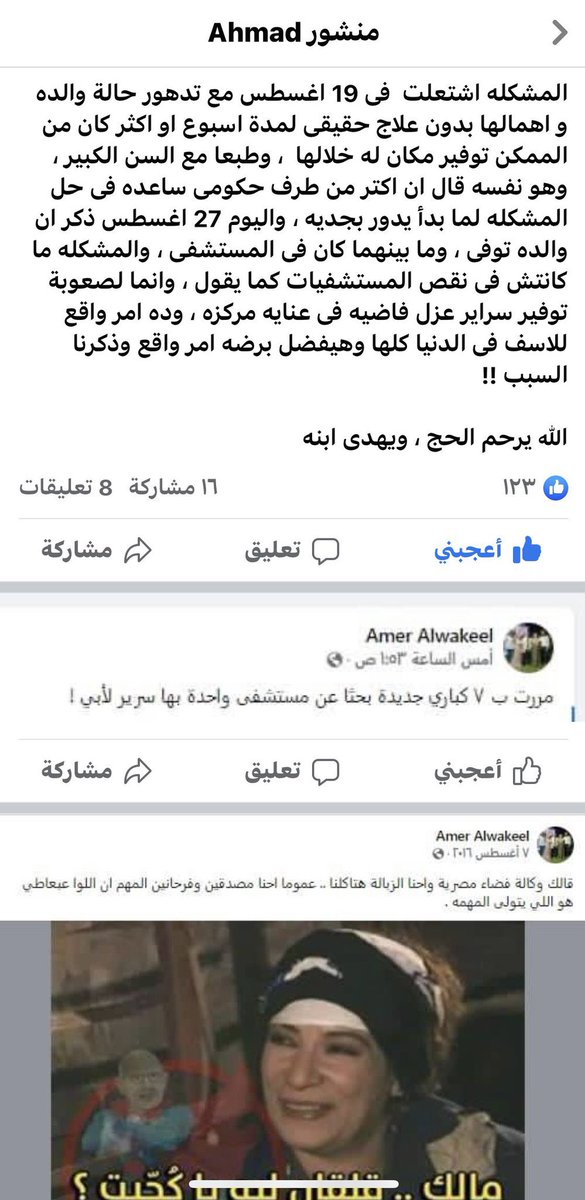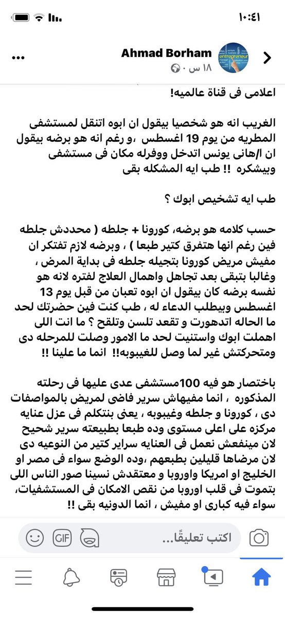 انكار الواقع الصعب الذي يعيشه المصريون منذ بداية كورونا مع استغلال المستشفيات جريمة مستمرة وتصرف واطى.