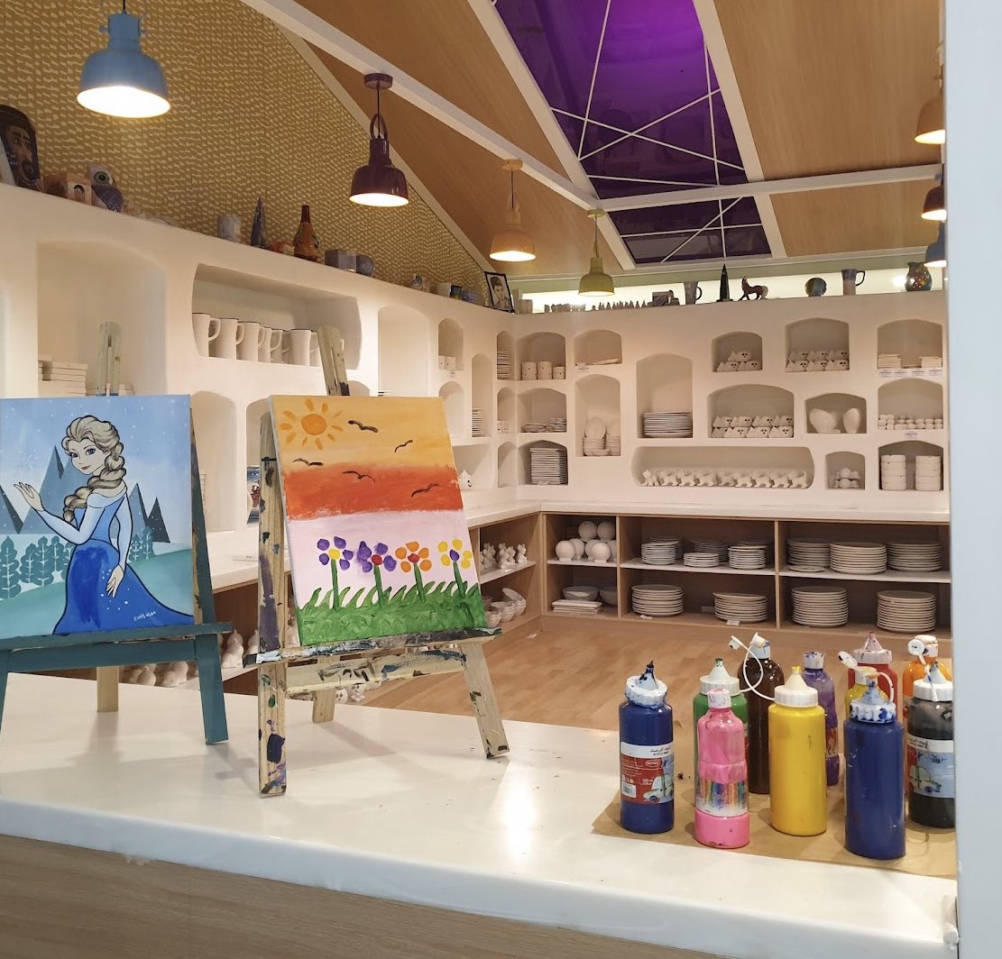 مقهى مع استوديو لتزيين الفخار، ومساحة رائعة للأطفال والمدارس👍🏼.