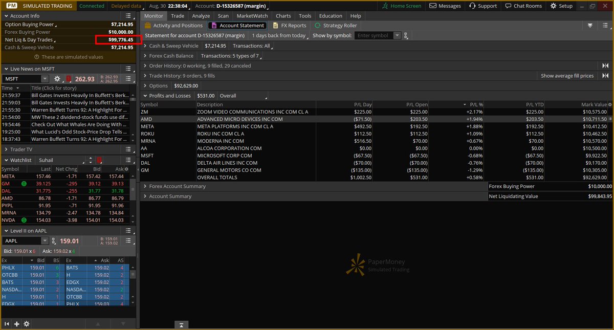 وهذا لايعنى انه لاتوجد صفقات خاسرة، فالمحفظة توضح ان شركتى AMD و PYPL حققت خسائر تراكمية، بمعنى نتيجة عدة صفقات ادت الى هذه الخسارة، بقية الشركات كان عندها خسائر لبعض الصفقات، لكن تراكمية الارباح غطت على الخسائر ان وجدت، كذلك يمكن ان تقبل انت بالخسارة نظرا لخروجك من شركة والتحول