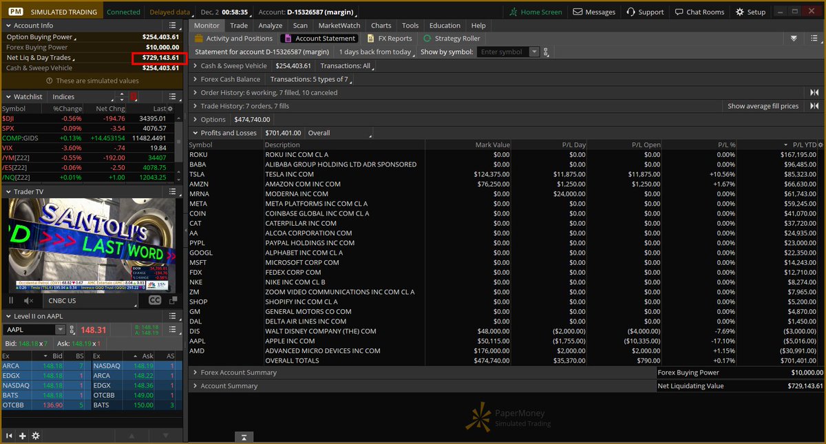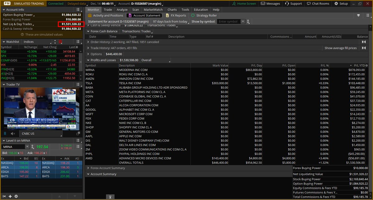 كنت انوى ان اتوقف عن نشر النتائج بمجرد وصولنا الى المليون دولار، لكن بعد ان تجاوزنا المليون قبل نهاية العام الميلادي، فلا باس من ان نستمر حتى اخر يوم في السنة الميلادية 2022، وسأقدم بعض الإضاءات على الاستراتيجية وربما اخصص مساحة لها، مع مراعاة الحفاظ على الحقوق الفكرية