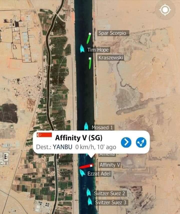 - جنوح ناقلة نفط سنغافورية في #قناة_السويس، طولها 252 متر، ومحاولات شاقة من رجال القناة لتعويمها سريعآ ..