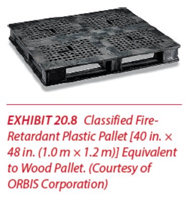 يمكن تخزين البلاستيك مجموعة A بشرط ان لا يتجاوز ارتفاع التخزين عن 1.5 متر واذا كانت الارفف مصمتة وجب استعمال in rack sprinklers