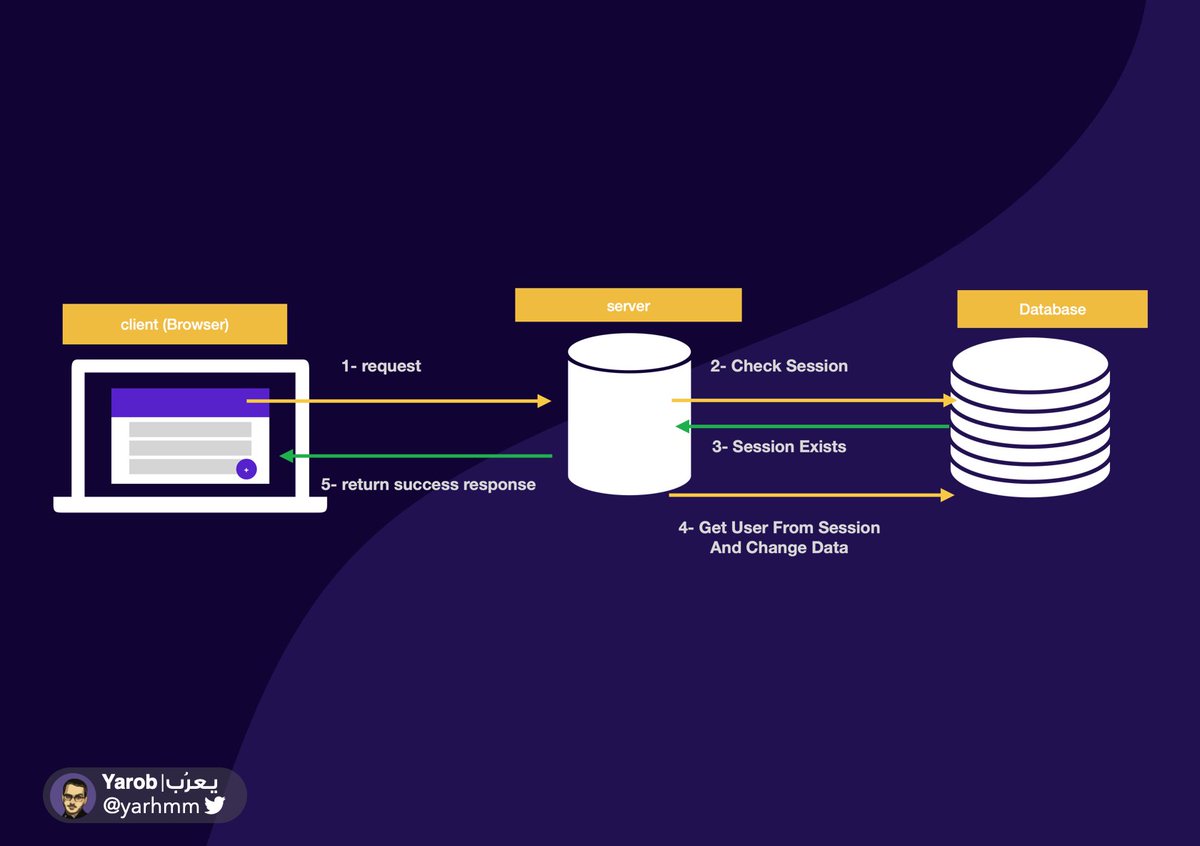 هل تذكر مثال الغرفة الممتلئة بالبيانات لكل مستخدم و مفتاحها هو ال session_id؟ الآن لا يوجد غرف بالسيرفر لتعبئة بيانات الجلسات لكل مستخدم، بل تحفظ البيانات في جهاز المستخدم نفسه