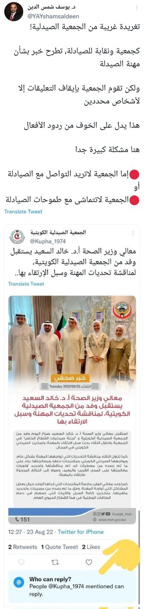 لم تجري الجمعية الصيدلية @Kupha_1974 مؤتمرات مهنية ذات قيمة فعلية في القطاع، ولم تحفز التواصل المهني من خلال المؤتمرات العلمية كالتي نراها في الجوار