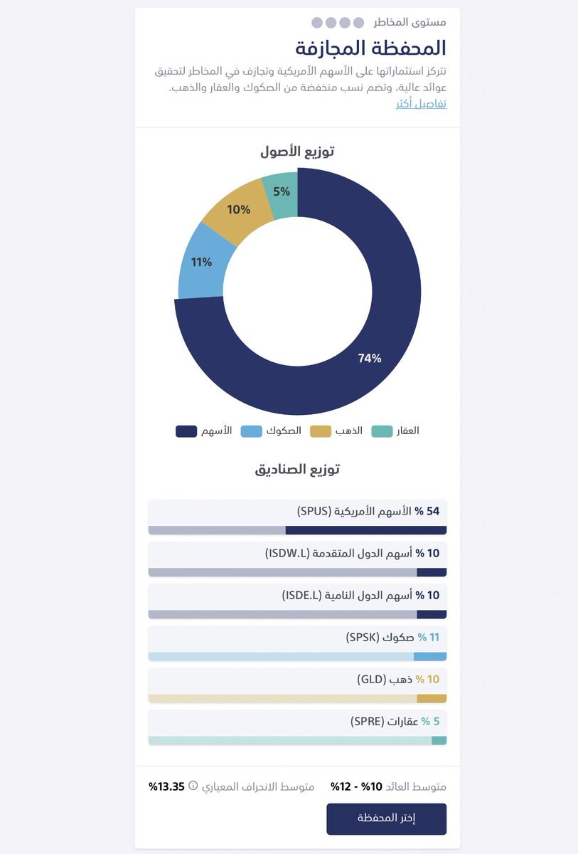 يعني مثلاً رحت لتمرة أبغى اشتري في سهم Apple فقط بيقولك ماعندنا هالخدمة، او بشتري في صندوق QQQ الي هو عبارة عن تجميع شركات التقنية الأمريكية في صندوق واحد بالإضافة لشركات أخرى بيقولون لك برضه ماعندنا هالخدمة، تمرة محددة لك صندوق أمريكي واحد الي هو SPUS ومعه ذهب وسندات وصكوك فقط.
