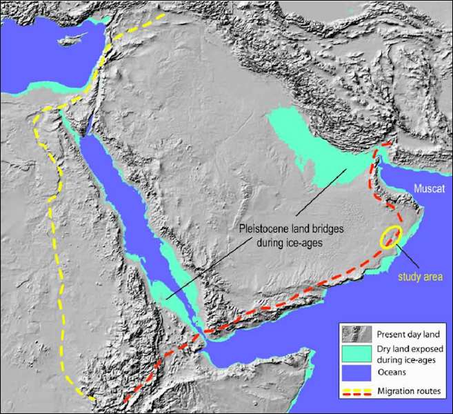 للتوضيح: كلامي لا ينفي أن الجزيرة العربية كانت في بعض العصور فيها الكثير من البشر. بل لا يستبعد أن يكون البشر الأوائل قد تواجدوا بها.