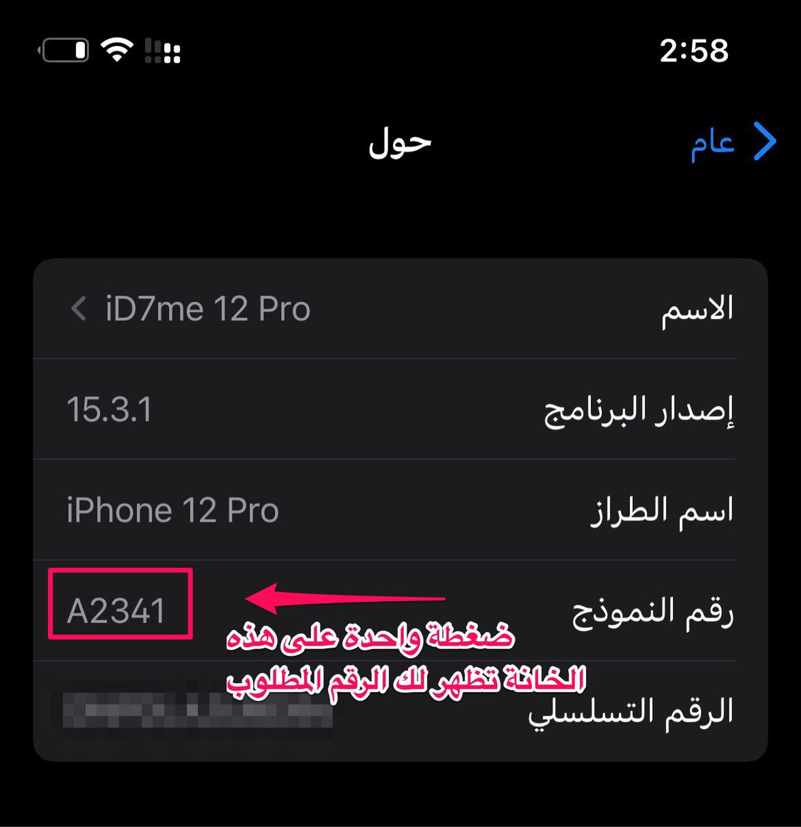 ثاني شي رقم Device ECID وتقدر تطلعه من الايتونز او في بعض ادوات الجلبريك تطلعه لك مثل اداة system Info