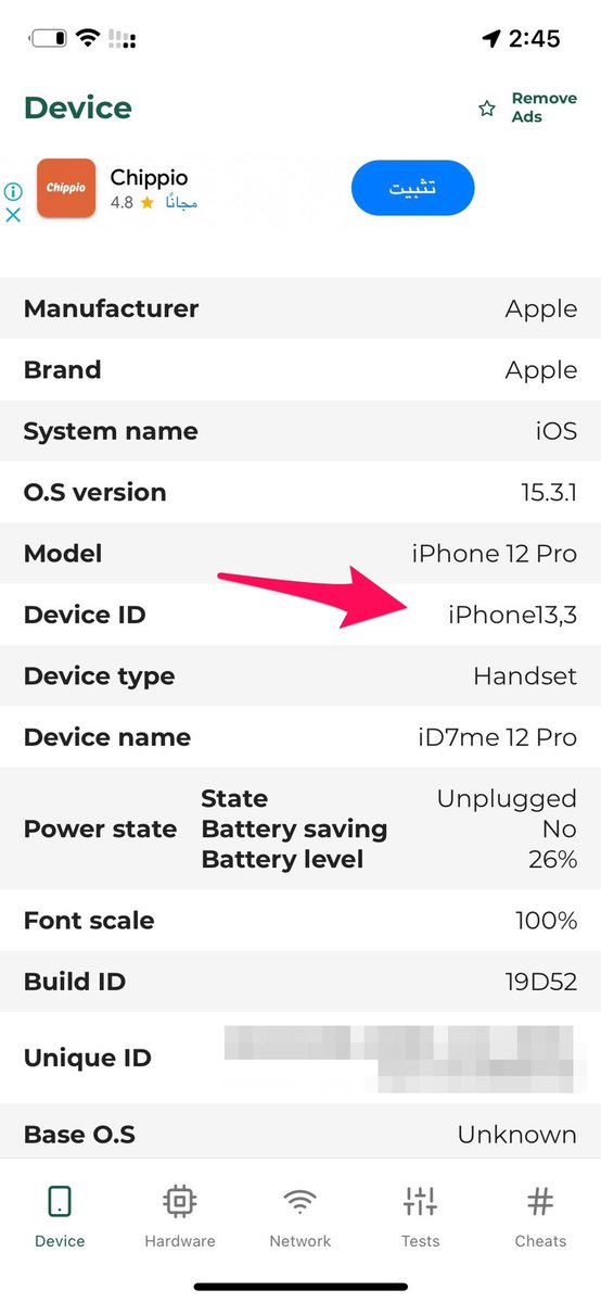 اول شي نستخرج رقم Device Identifier واسهل طريقة من خلال برنامج Device Info من الاب ستور