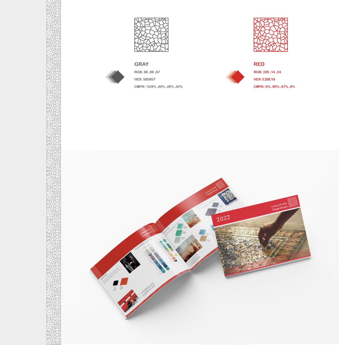 فكرة التصميم يعكس المنتج مباشرة ( قطعة بلاط فسيفساء).
