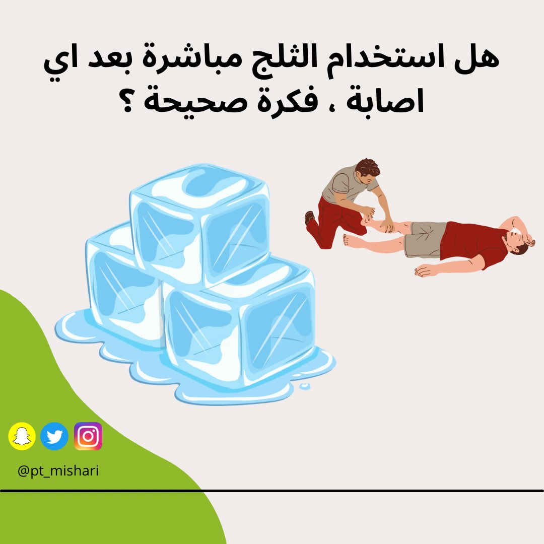 - بالرغم من احساس التخدير للمنطقه المصابه من الثلج الا انه سوف يؤخر عملية الالتهابات وبناء الأنسجه والاستشفاء 🥶⚠️!