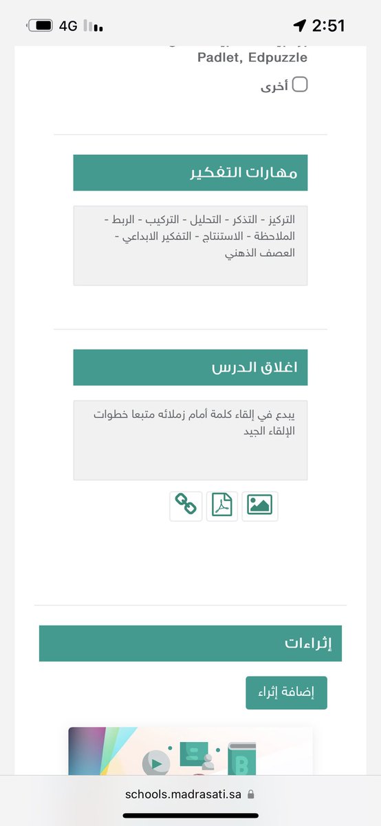 وهو يكمل التهيئة والاهداف والوسائل والاثراءات والخاتمة ومهارات التفكير