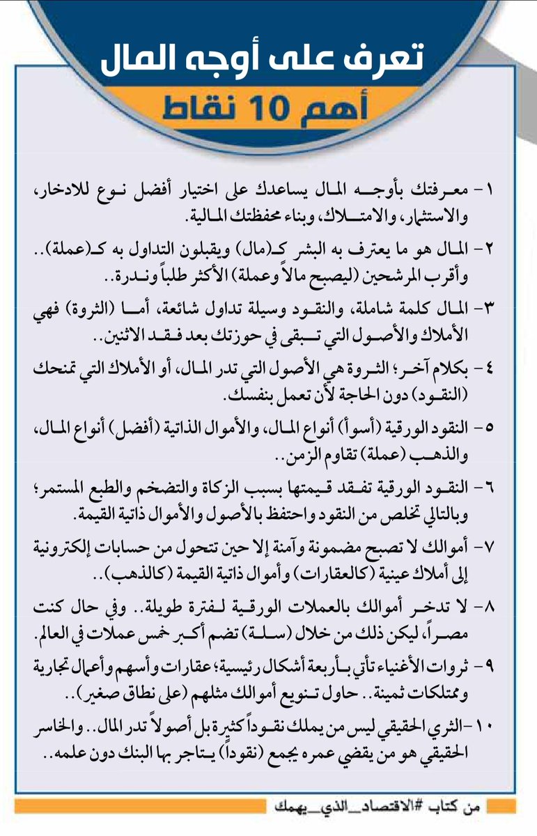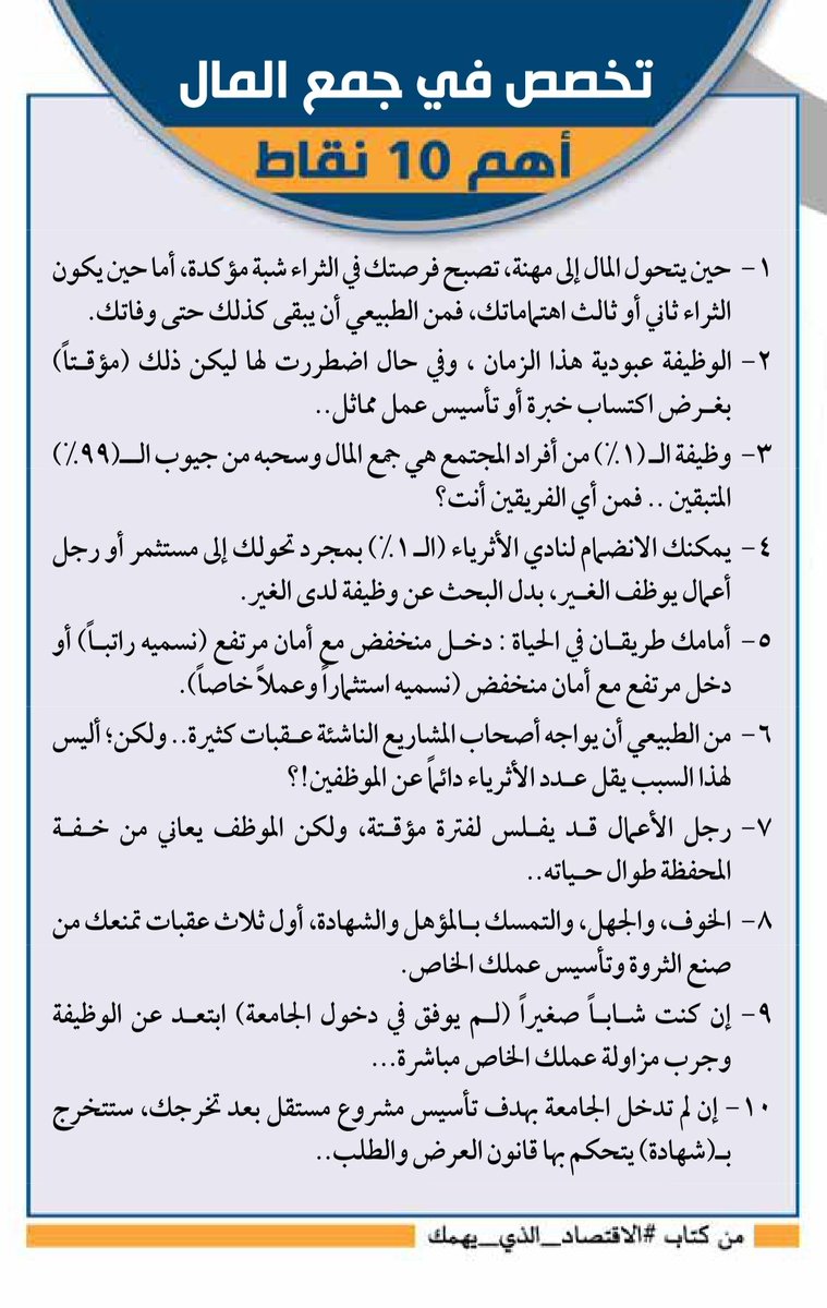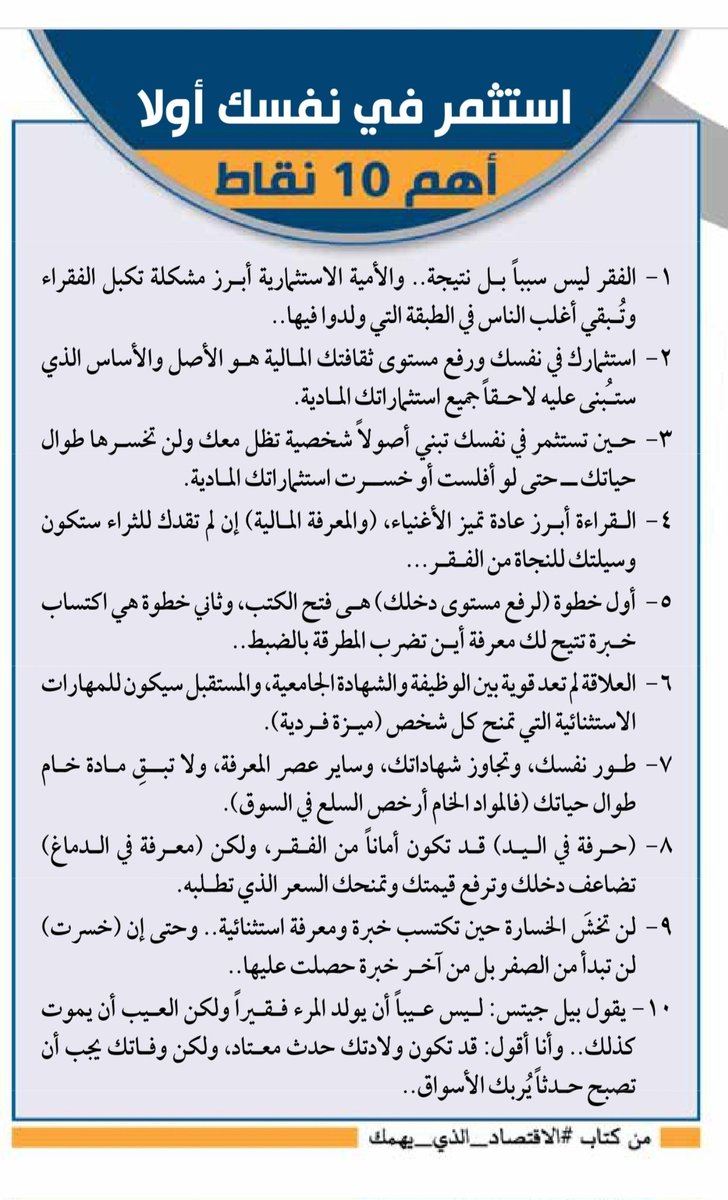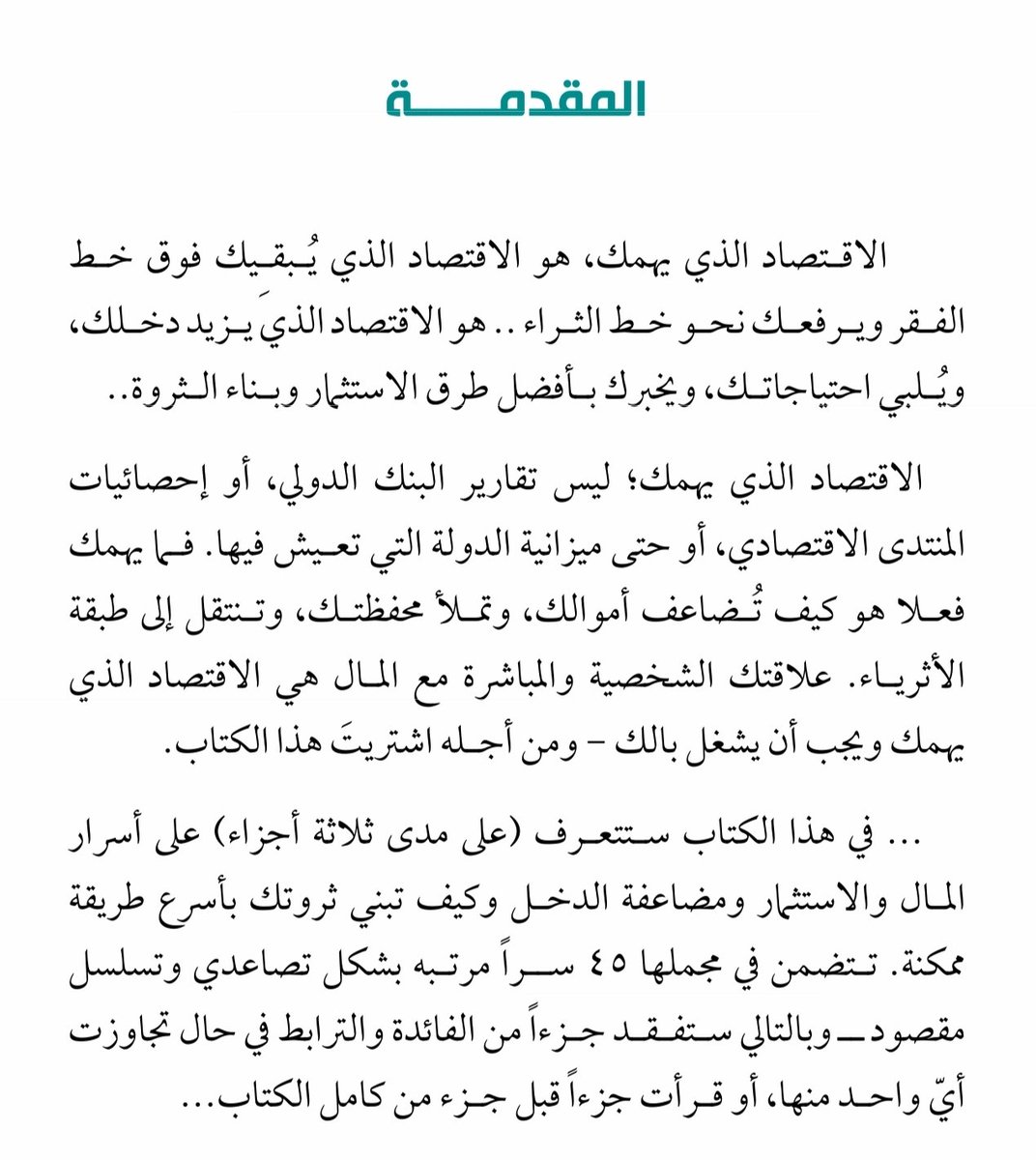 وسبب عنونة الكتاب بهذا الاسم (#الاقتصاد_الذي_يهمك) هو اهتمامه المباشر باقتصاد الفرد والانسان، ومايهمك معرفته فعلا لتحسين دخلك وقدرتك على جمع المال والاستثمار وبناء الثروة 👇🏽
