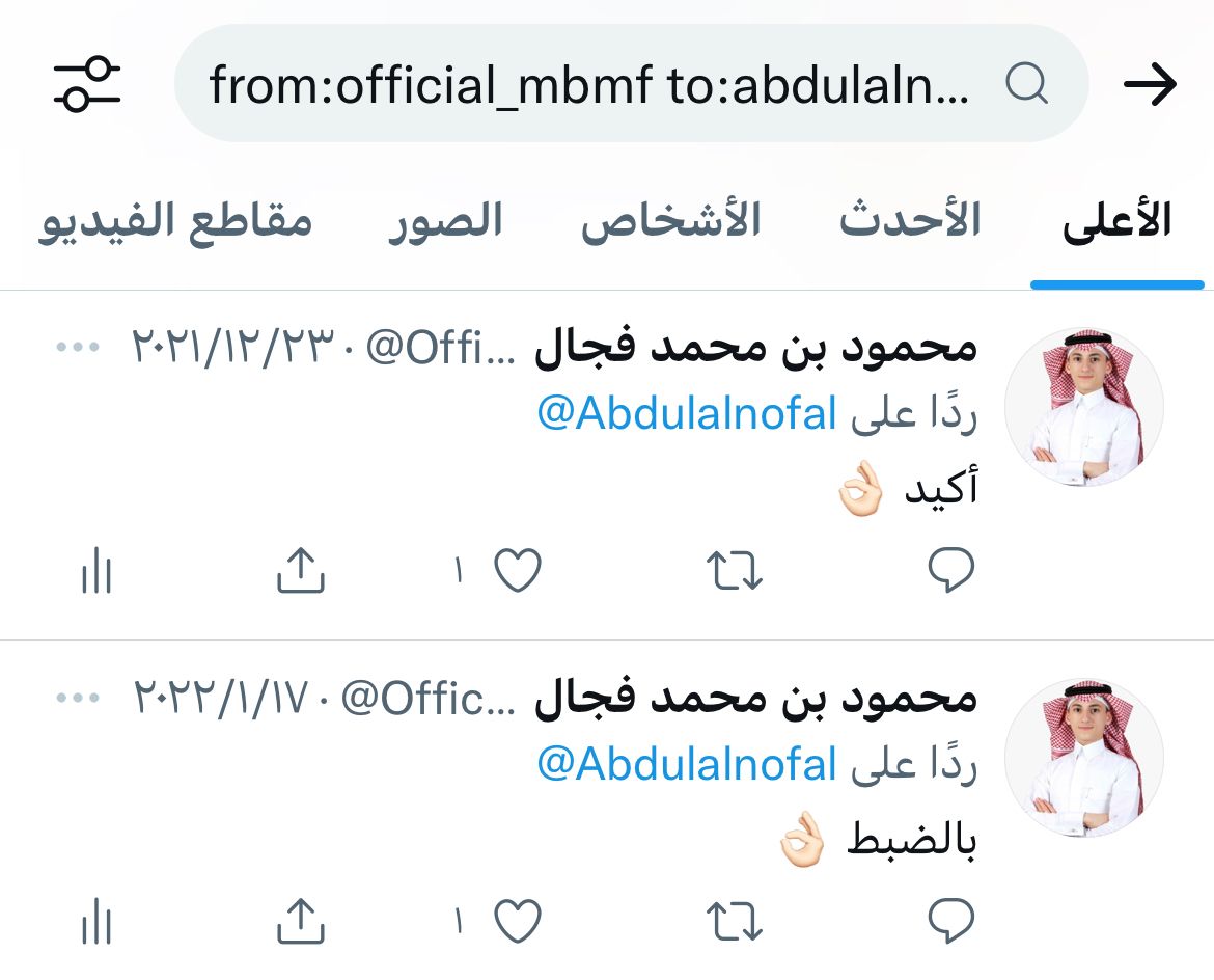 تبي تشوف تغريدات هذا الشخص @Official_Mbmf الي ارسلها لهذا الشخص @Abdulalnofal ؟
