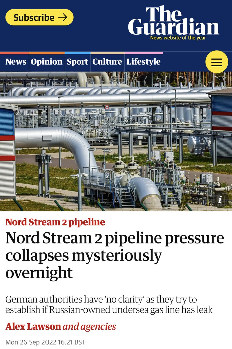 - بالرغم من عدم افتتاح خط "نورد ستريم 2 " لكنه يحتوي على كميات غاز كبيرة لدواعي تشغيلية فنية ، و يوم أمس انخفض مؤشرات ضغط الغاز الموجودة في الخط من 105 بار إلى 7 بار في يوم و ليلة !!