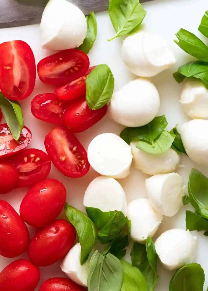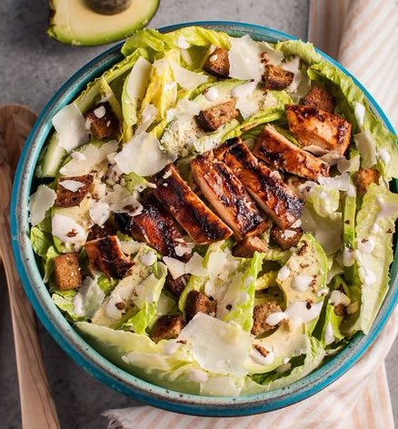 سلطة البيستو دجاج مع الطماطم والبوراتا.