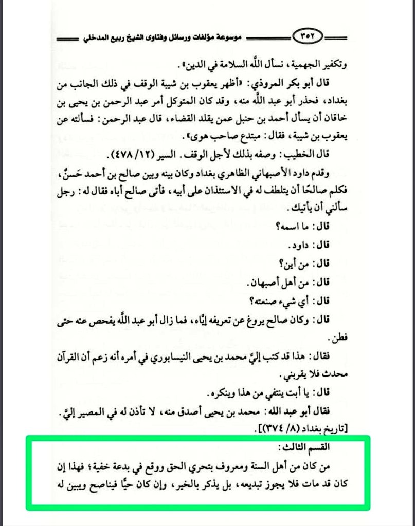↩️القسم الثاني: من هو من أهل السنة ووقع في بدعة واضحة كالقول بخلق القرآن أو القدر أو رأي الخوارج وغيرها فهذا يبدع وعليه عمل السلف
