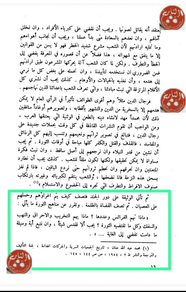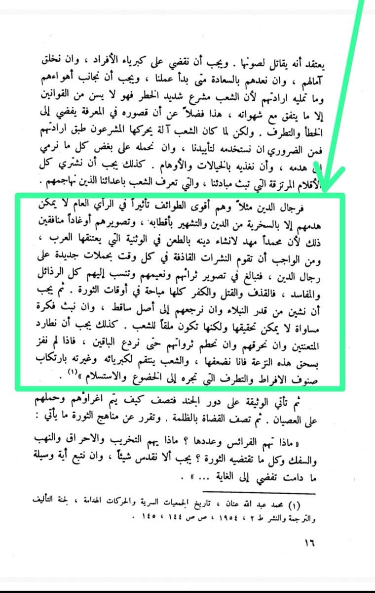رجال الدين يجب أن يسخر منهم القذف والقتل والكفر كلها مباحة أثناء الثورة يجب أن نبث فكرة مساواة لا يمكن تحقيقها