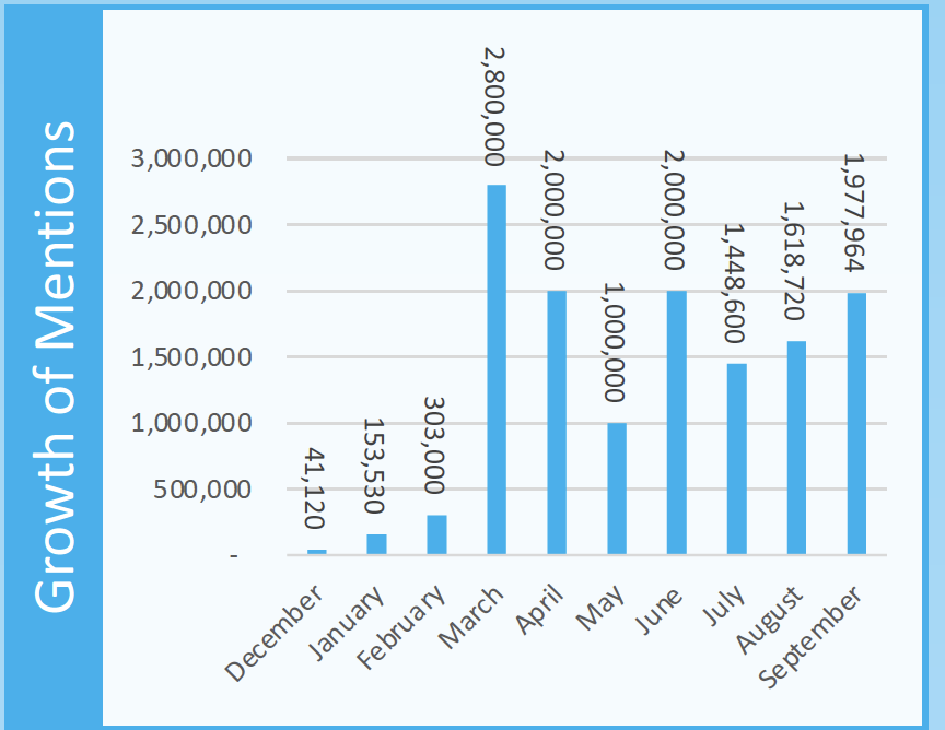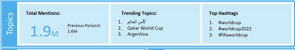 نمت محادثات كأس العالم قطر 2022 بنسبة 19٪ شهريًا (إجمالي 1.9 مليون ذِكرَ) مقارنة بالشهر الماضي كانت 1.6 مليون ذِكرَ
