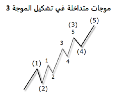 وفي الرسم الموجي أعلاه يمكنك أن ترى كيف تتكون الموجة 1 من الدرجة العالية من نموذج اندفاعي أصغر مكون من 5 موجات وأن الموجة 2 تتكون من نموذج تصحيحي أصغر من ثلاث موجات وكل من هذه الموجات بدورها تتكون دائمًا من أنماط موجات أصغر وهكذا تبدو موجات اليوت.