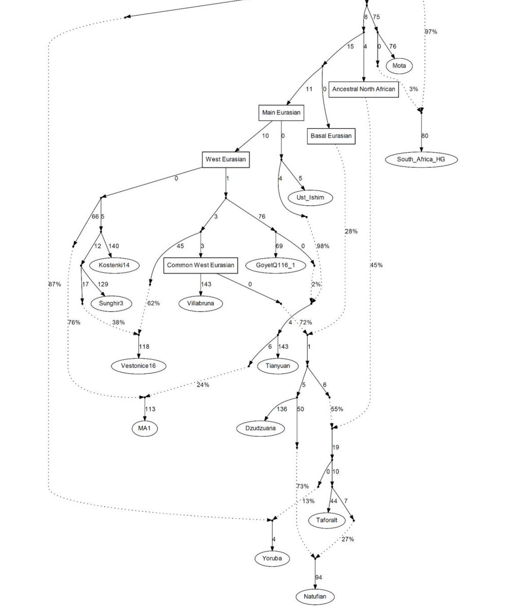 ترتيب مساهمة الرافد الأوراسي القاعدي ضمن عينات الشام القديم (بعد التحيين)