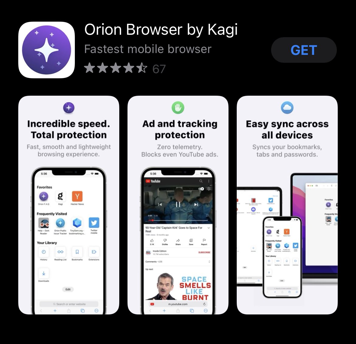 الثالث عشر هو متصفح Orion يعتبر اشبه بمتصفح سفاري مع اضافات جميلة مثل وضع خيارات لفتح الروابط في تطبيقات مخصصة و تحكم بالنوافذ بشكل افضل ويحميك من الاعلانات والتتبع ويحجب حتى اعلانات يوتيوب