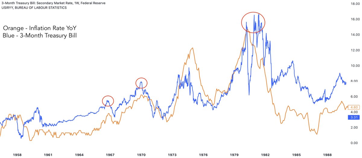 10/ So why did the Fed have to raise interest rates above CPI in the 1970s?