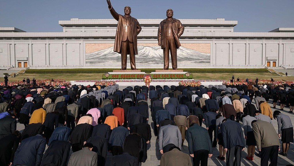 بعد الساعة الـ 9 ليلاً كوريا الشمالية تطفئ أنوارها بإستثناء المباني الحكومية وساحة التماثيل، هذه الساحة تُعتبر هي الرمز الأول في كوريا الشمالية ويجب عليك أن تظهر إحترامك وعبادتك لها ، تقريبًا بشكل يومي عند المرور منها تتوقف وتركع وتشكرهم ومن ثم تستمر في طريقك، هذه الساحة خط أحمر