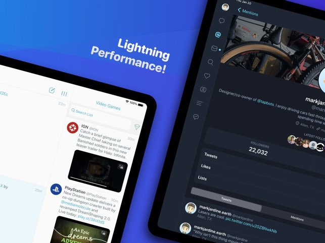 والحادي عشر هو تطبيق التويتر المعتمد لاغلب مستخدمي الايباد وهو Tweetbot والميزة السائدة فيه خلوه من الشوائب والتشتيت ويساعدك على القراءة والكتابه فيه بدون تداخل مواضيع لاعلاقة لك بها .. كما يمكنه من عمل فلاتر للكلمات المحجوبة والمكتومة بشكل متغير