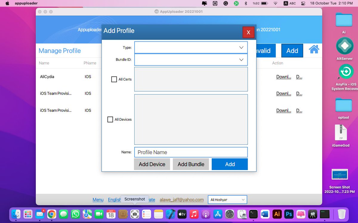 بعدها ارجع للصفحة الرئيسية بالبرنامج واضغط profile