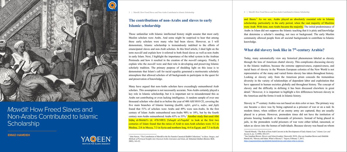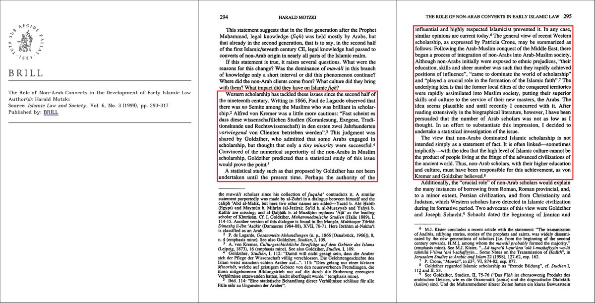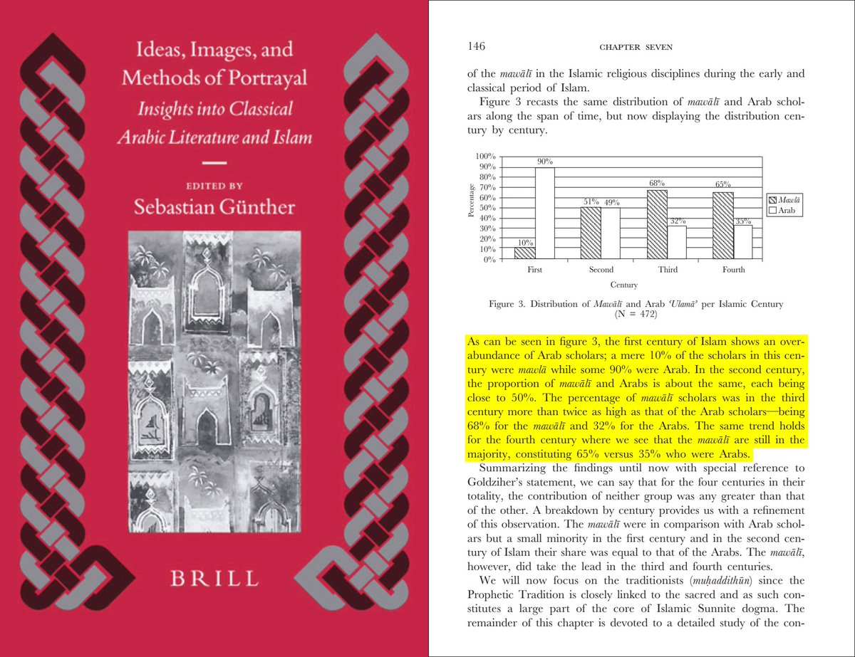 @alk3aam 7⃣ فقد وجدت أحد الدراسات بعد تجميع أسماء العلماء الذين تم ذكر أصولهم بشكل صريح في المصادر التاريخية بأن 90% من علماء المسلمين خلال 100 سنة بعد الإسلام كانوا من العرب الأقحاح