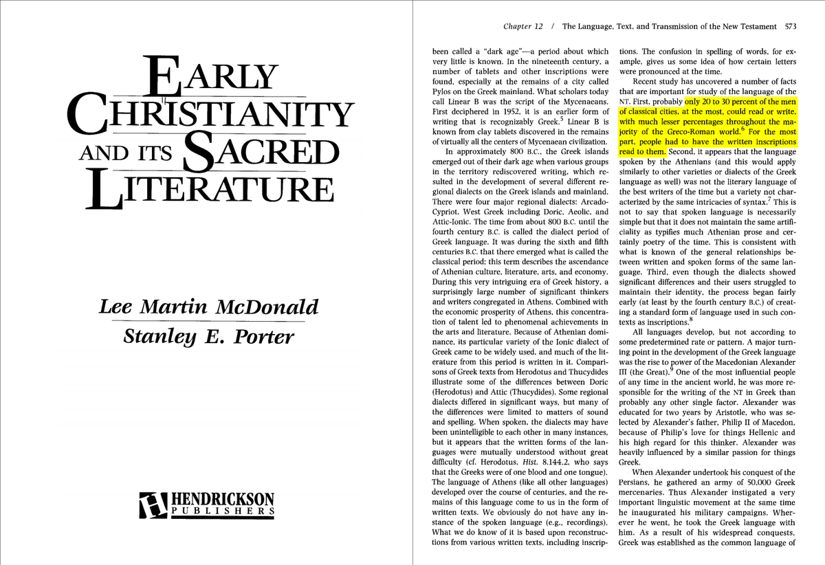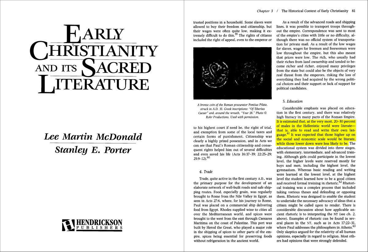 @alk3aam 6⃣1⃣ فقد كانت نسبة محو الأمية في الإمبراطورية الرومانية بطولها و عرضها (بما فيها شمال إفريقيا و مصر و الشام) تتراوح بين 20-30% على أقصى تقدير، و كانت محصورة في الذكور من الطبقة العليا و في المدن الرئيسية فقط