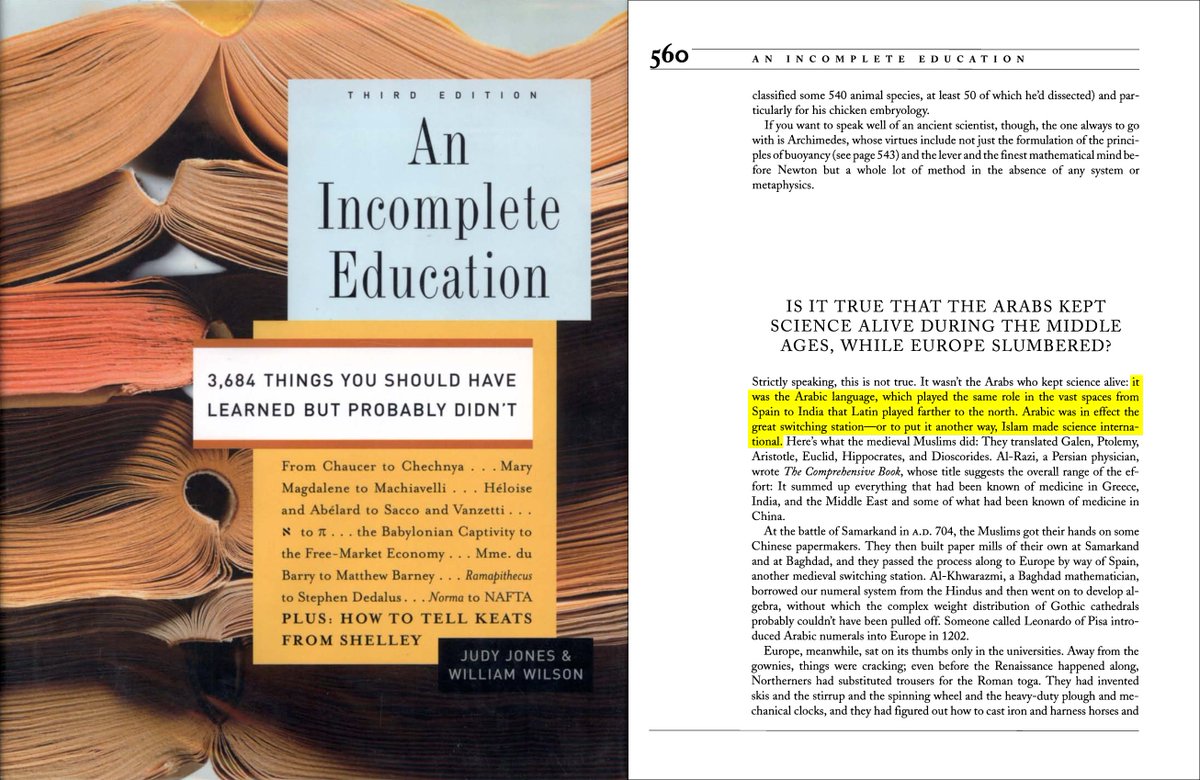 @alk3aam 1⃣2⃣ فما هي إلا بضع عشرات من السنين بعد الفتوحات حتى تحول الشرق الأوسط من مستنقع للجهل و الأمية إلى أكثر بلاد الأرض تعلّمًا و ثقافة