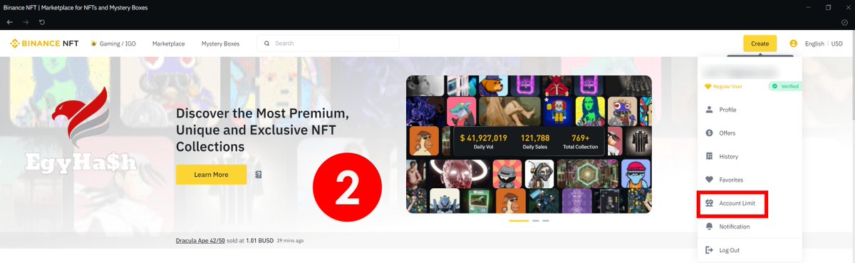 1- قم بالدخول إلى قسم NFT من حسابك على بينانس.