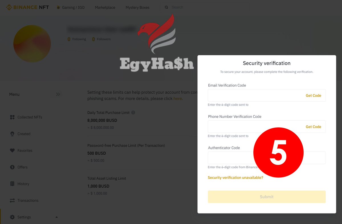 شراء NFT لا يتطلب أكواد مصادقة في حالة عدم تجاوز الحد الافتراضي، ولهذا ألوم بينانس، لأن هذا الخيار يجب أن يكون مفعلًا بشكل تلقائي.