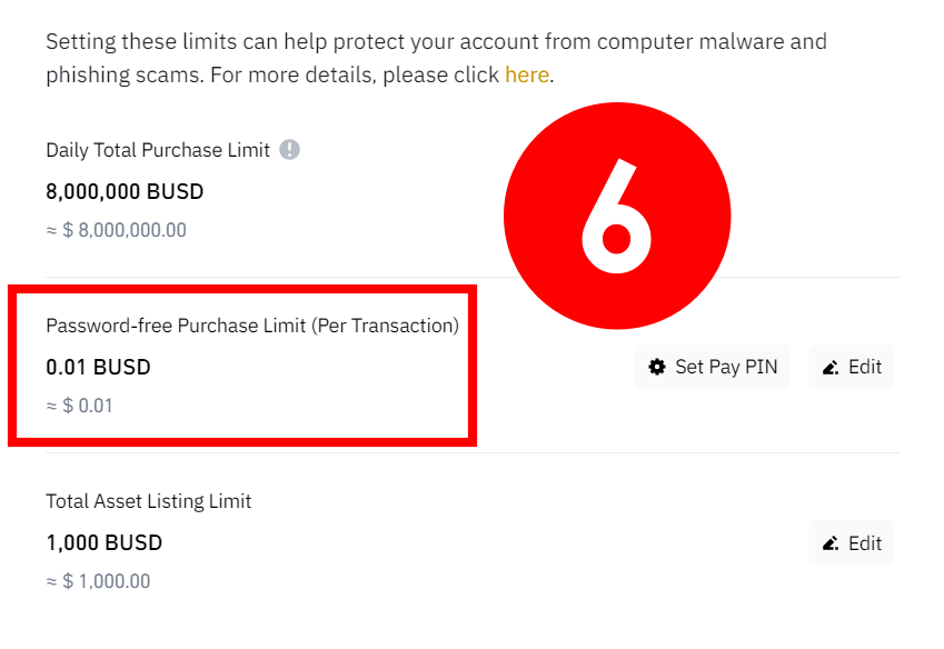 يمكن أيضًا من خيار Set Pay Pin وضع كود للموافقة على عمليات الشراء بدلًا من طرق التفعيل المعروفة، لكن يُفضل عدم تفعيل هذا الخيار إذا كنت لا تستخدم سوق الـNFT.
